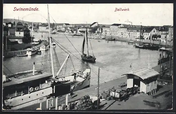 AK Swinemünde, Ortsansicht mit Bollwerk