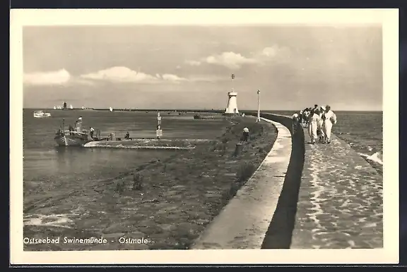 AK Swinemünde, Ostmole mit Urlaubern