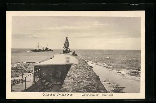 AK Swinemünde, Ostmolenkopf mit Torpedoboot