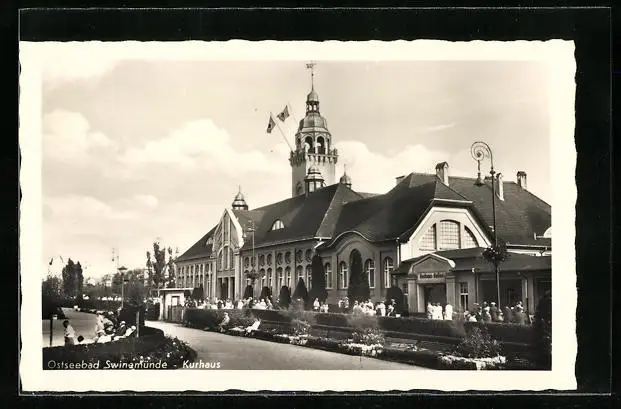 AK Swinemünde /Ostsee, Partie am Kurhaus, mit -Fahnen