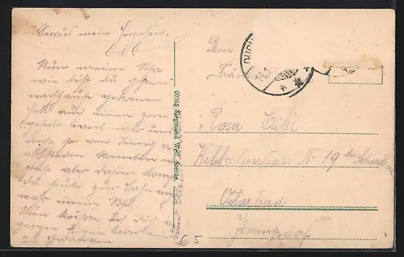 alte Ansichtskarte, gelaufen, Briefmarke entfernt, rückseitig Oberflächenschaden, Eckknicke li., guter Zustand
