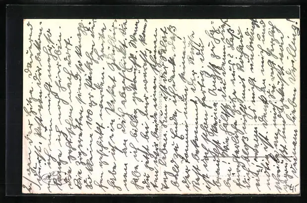 Personenbezogene Daten auf der Rückseite der Karte wurden durch blauen Textmarker unkenntlich gemacht. Die blauen Stellen sind auf die Vorderseite durchgeweicht und wirken sich negativ auf das Postkartenfoto aus