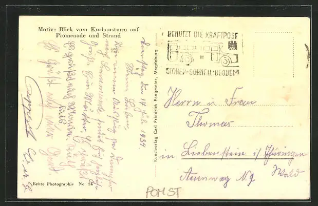 alte Ansichtskarte, gelaufen 1934, Briefmarke entfernt, guter Zustand