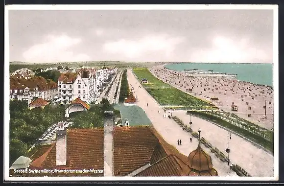 AK Swinemünde, Strandpromenade aus der Vogelschau