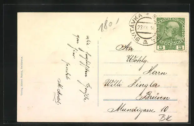alte Ansichtskarte, gelaufen 1914, Stempelspur, guter Zustand