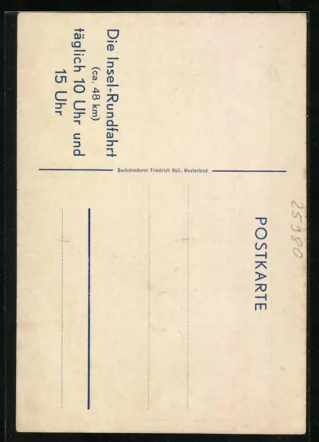 AK Sylt, Übersichtskarte der Insel-Rundfahrt