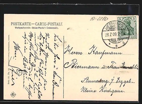 alte Ansichtskarte, gelaufen 1909, Stempelspur, guter Zustand