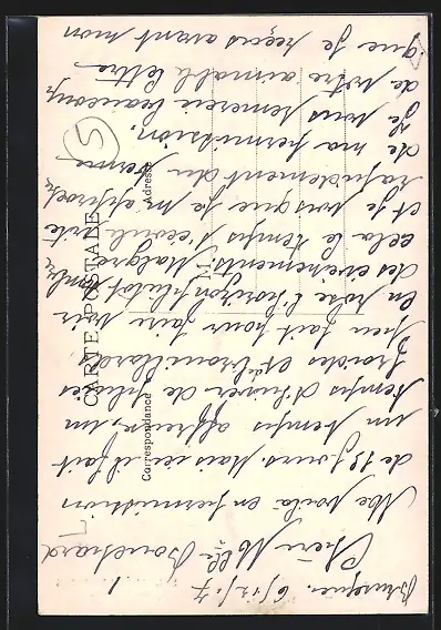 Personenbezogene Daten auf der Rückseite der Karte wurden durch blauen Textmarker unkenntlich gemacht. Die blauen Stellen sind auf die Vorderseite durchgeweicht und wirken sich negativ auf das Postkartenfoto aus