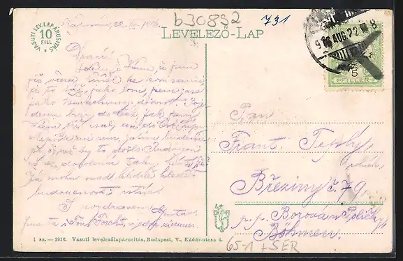 gelaufen 1916, Eckknick re. oben, guter Zustand