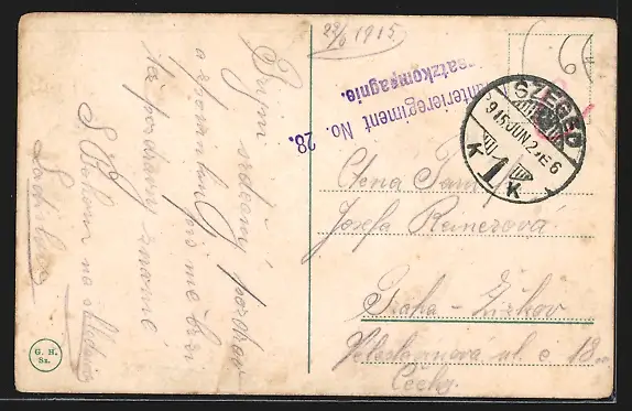 gelaufen 1915, Eckknick re. unten, guter Zustand