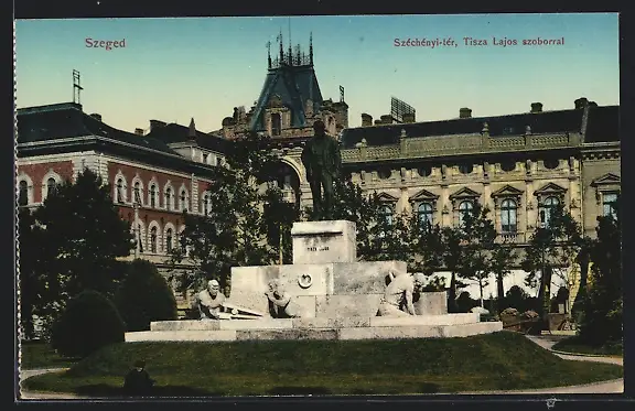 AK Szeged, Szechenyi-ter, Tisza Lajos szoborral