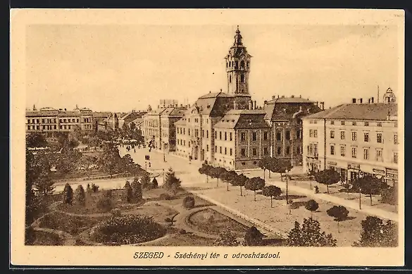 AK Szeged, Széchényi tér a várocházávol