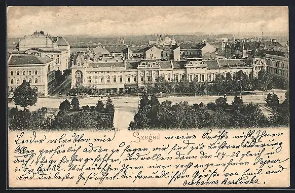 AK Szeged, Teilansicht mit Anlage u. Strasse aus der Vogelschau
