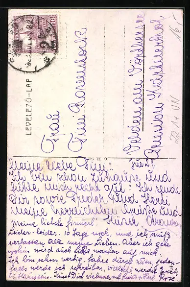 Personenbezogene Daten auf der Rückseite der Karte wurden durch blauen Textmarker unkenntlich gemacht. Die blauen Stellen sind auf die Vorderseite durchgeweicht und wirken sich negativ auf das Postkartenfoto aus