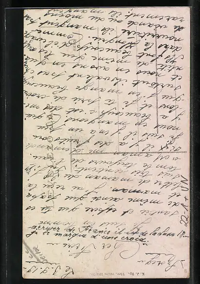 Personenbezogene Daten auf der Rückseite der Karte wurden durch blauen Textmarker unkenntlich gemacht. Die blauen Stellen sind auf die Vorderseite durchgeweicht und wirken sich negativ auf das Postkartenfoto aus