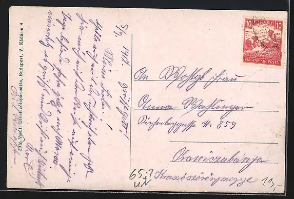 Personenbezogene Daten auf der Rückseite der Karte wurden durch blauen Textmarker unkenntlich gemacht. Die blauen Stellen sind auf die Vorderseite durchgeweicht und wirken sich negativ auf das Postkartenfoto aus