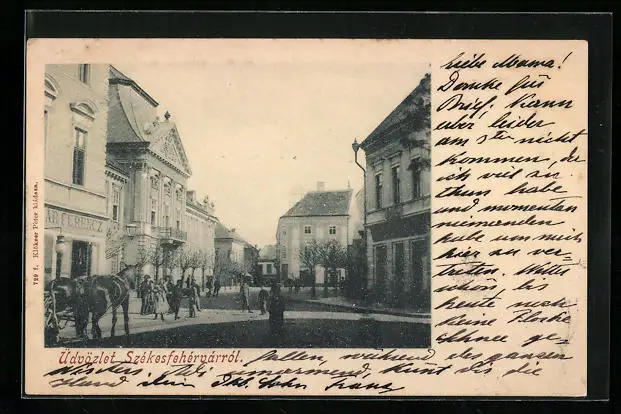 AK Székesfehérvár, Strassenpartie mit Einwohnern