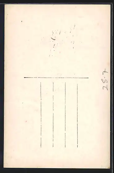 Personenbezogene Daten auf der Rückseite der Karte wurden durch blauen Textmarker unkenntlich gemacht. Die blauen Stellen sind auf die Vorderseite durchgeweicht und wirken sich negativ auf das Postkartenfoto aus