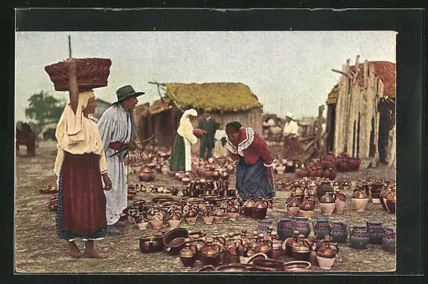 AK Szene mit Einheimischen auf dem Topfmarkt