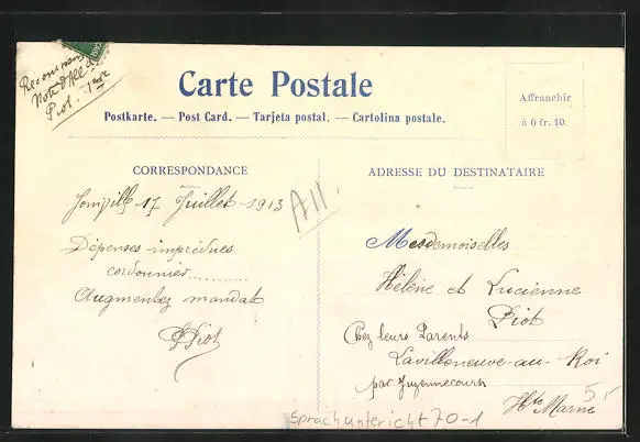 AK T-A-D Delmas Auxiliary Pictures, Der unglückliche Fischer, Sprachunterricht