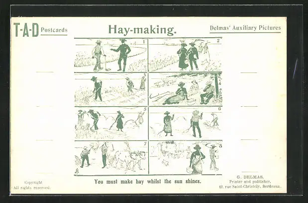 AK T-A-D Delmas Auxiliary Pictures, Hay-making, Sprachunterricht