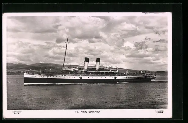 AK T.S. King Edward fährt eine Küste entlang, Passagierschiff