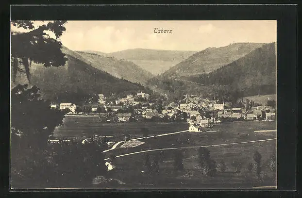 AK Tabarz, Ortsansicht mit Berglandschaft