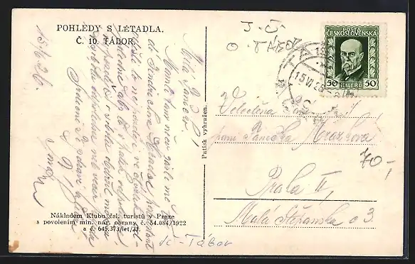AK Tabor, Ortsansicht mit Burg