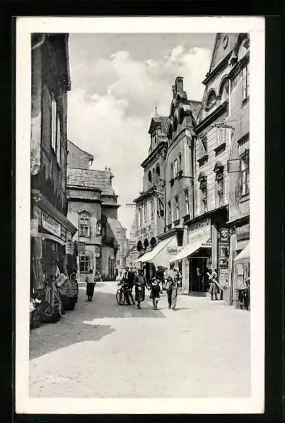 AK Tabor, Ortsansicht mit Strassenleben
