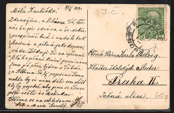 alte Ansichtskarte, gelaufen 1913, Eckknicke re. unten, vorderseitig Klebe- und Papierreste, guter Zustand