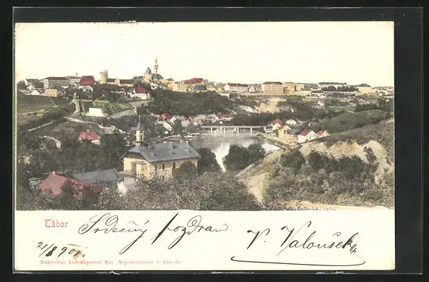 AK Tabor, Totalansicht vom Ort mit Kirchen