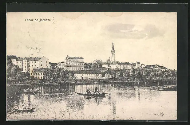 AK Tabor, od Jordana, kleines Ruderboot auf der Lainsitz