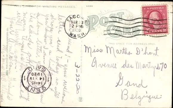 Zustand, siehe Scan, gelaufen, 1920 - ca 14 cm X 9 cm