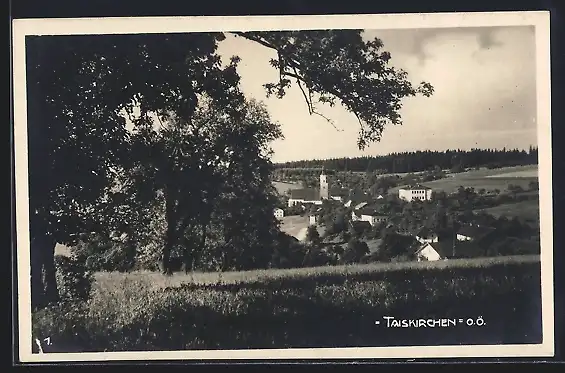 AK Taiskirchen /O.Ö., Ortsansicht von einer Anhöhe aus