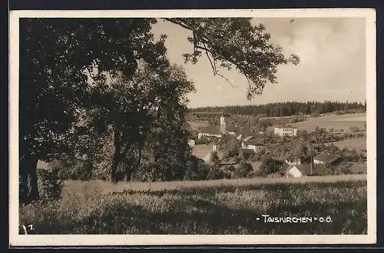 AK Taiskirchen /O.Ö., Ortsansicht von einer Anhöhe aus