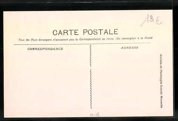 Personenbezogene Daten auf der Rückseite der Karte wurden durch blauen Textmarker unkenntlich gemacht. Die blauen Stellen sind auf die Vorderseite durchgeweicht und wirken sich negativ auf das Postkartenfoto aus