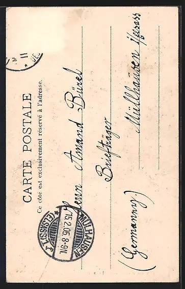 alte Ansichtskarte, gelaufen 1905, Briefmarke entfernt, Stempelspur, guter Zustand