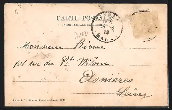 alte Ansichtskarte, gelaufen, Briefmarke entfernt, Eckknick links unten, guter Zustand