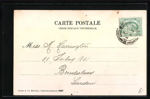 alte Ansichtskarte, gelaufen, Stecknadelloch oben mittig, guter Zustand
