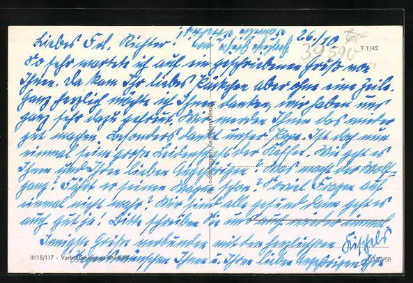 ungelaufen, Rückseite beschrieben, Eckknick li. oben, sonst guter Zustand