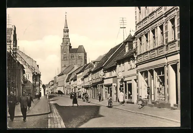 AK Tangermünde, Strassenpartie mit Blick zur Stephanskirche