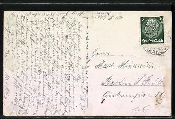 alte Ansichtskarte, gelaufen 1935, rückseitig Klebe- und Papierreste, guter Zustand