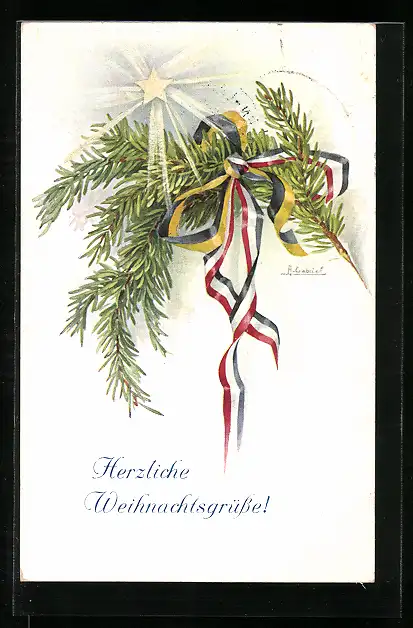 AK Tannenzweig mit Fahnenbändern, Weihnachtsgruss, Zweibund