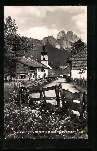AK Tannheim, Strassenpartie mit Kirche und Tannheimergruppe