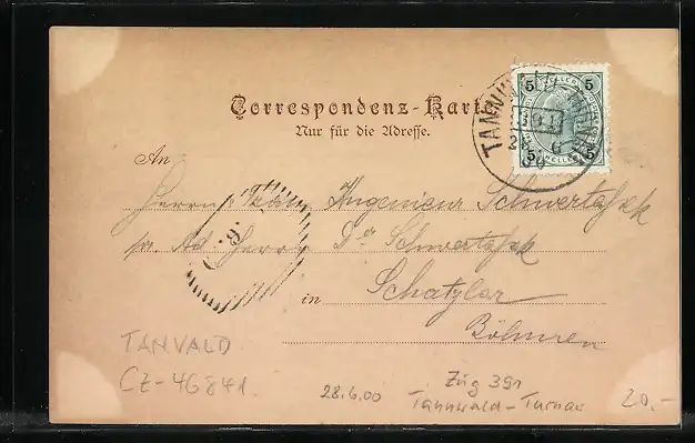 alte Ansichtskarte, gelaufen 1900, guter Zustand