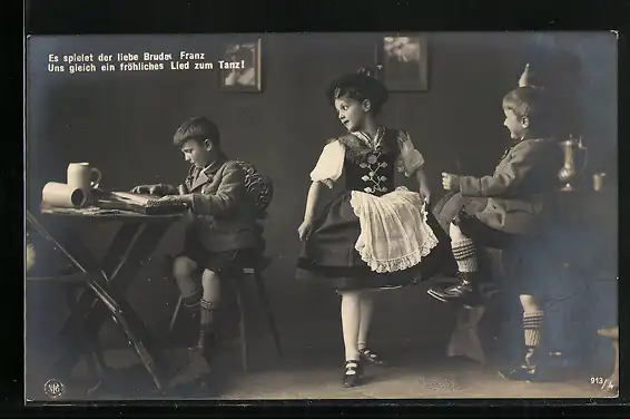 AK Tanzendes Trachtenmädel mit Knabe an der Zither