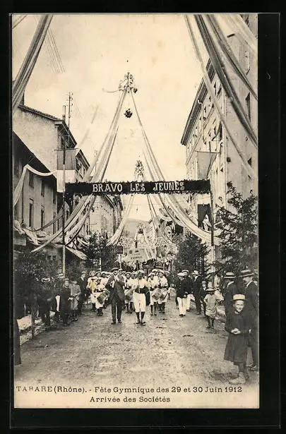 AK Tarare, Fetes de Gymnastique 1912, Arrivèe des Sociètès