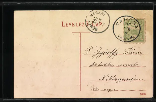 Personenbezogene Daten auf der Rückseite der Karte wurden durch blauen Textmarker unkenntlich gemacht. Die blauen Stellen sind auf die Vorderseite durchgeweicht und wirken sich negativ auf das Postkartenfoto aus
