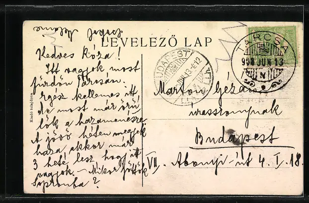 gelaufen 1908, Eckknicke li. oben u. re. unten, Stempelspur, guter Zustand