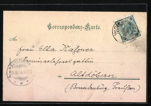 gelaufen 1904, Eckknicke li. oben, Stempelspur, guter Zustand